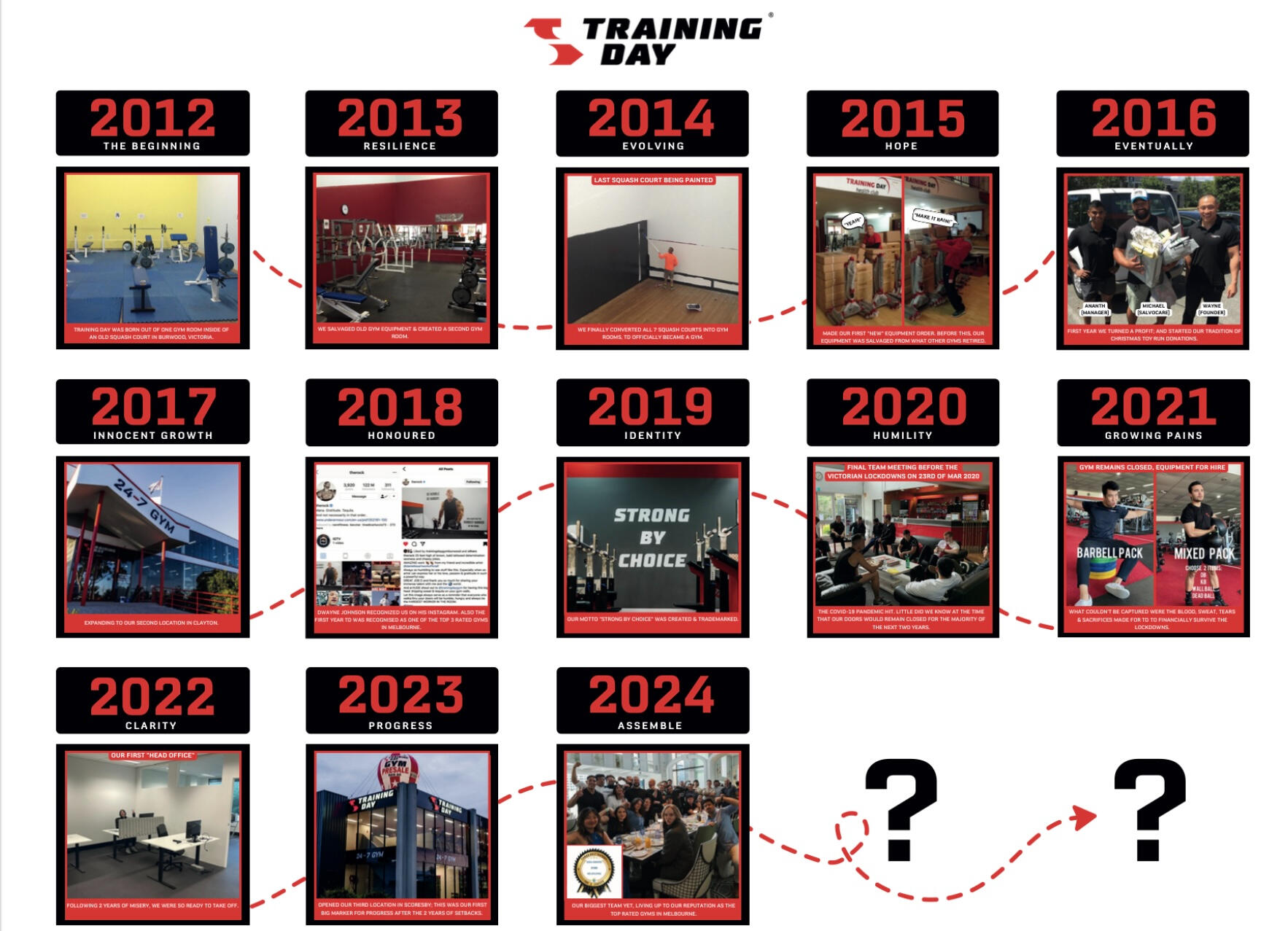 I started Training Day in 2012.Only 22 years old at the time, I left my safe corporate marketing job.With one gym room and $30k of savings, I dreamed of building a community where strength and vulnerability can coexist.For the first 4 years, I paid to work.I wore every hat, trainer by day, maintenance by night.
